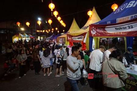 Pengunjung memadati Festival Kampung Pecinan sebagai bagian dari rangkaian acara spesial Dies Natalis ke-17 Universitas Ma Chung, Jumat (27/7/2024). (Nedi Putra AW)