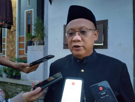 Kades Oro-Oro Ombo, Wiweko saat diwawancarai awak media di sela-sela menyaksikan Karnaval Budaya Nusantara. (Yan)