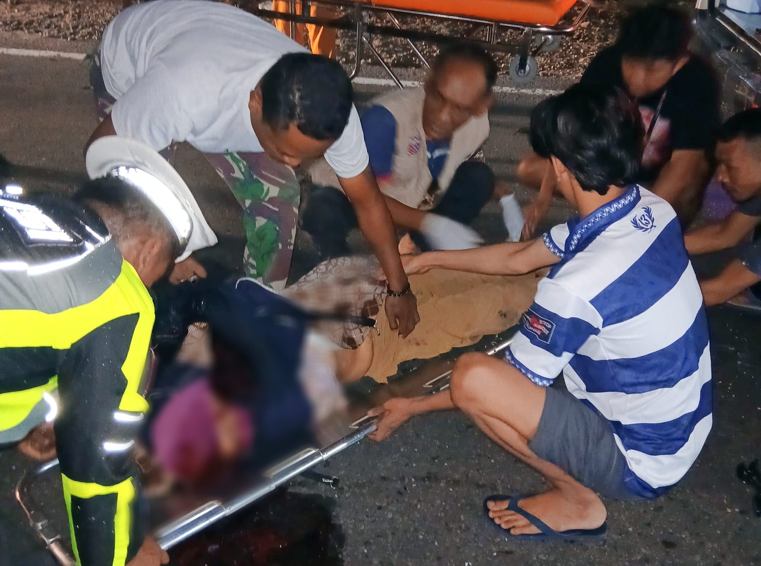 Namun, duka menyelimuti lokasi kecelakaan. Sang ibu, Suswanti (54), ditemukan tergeletak di tengah jalan dengan luka benturan di kepala dan dinyatakan meninggal di tempat. Proses evakuasi dilakukan oleh gabungan anggota lantas dan polsek dibantu warga setempat.