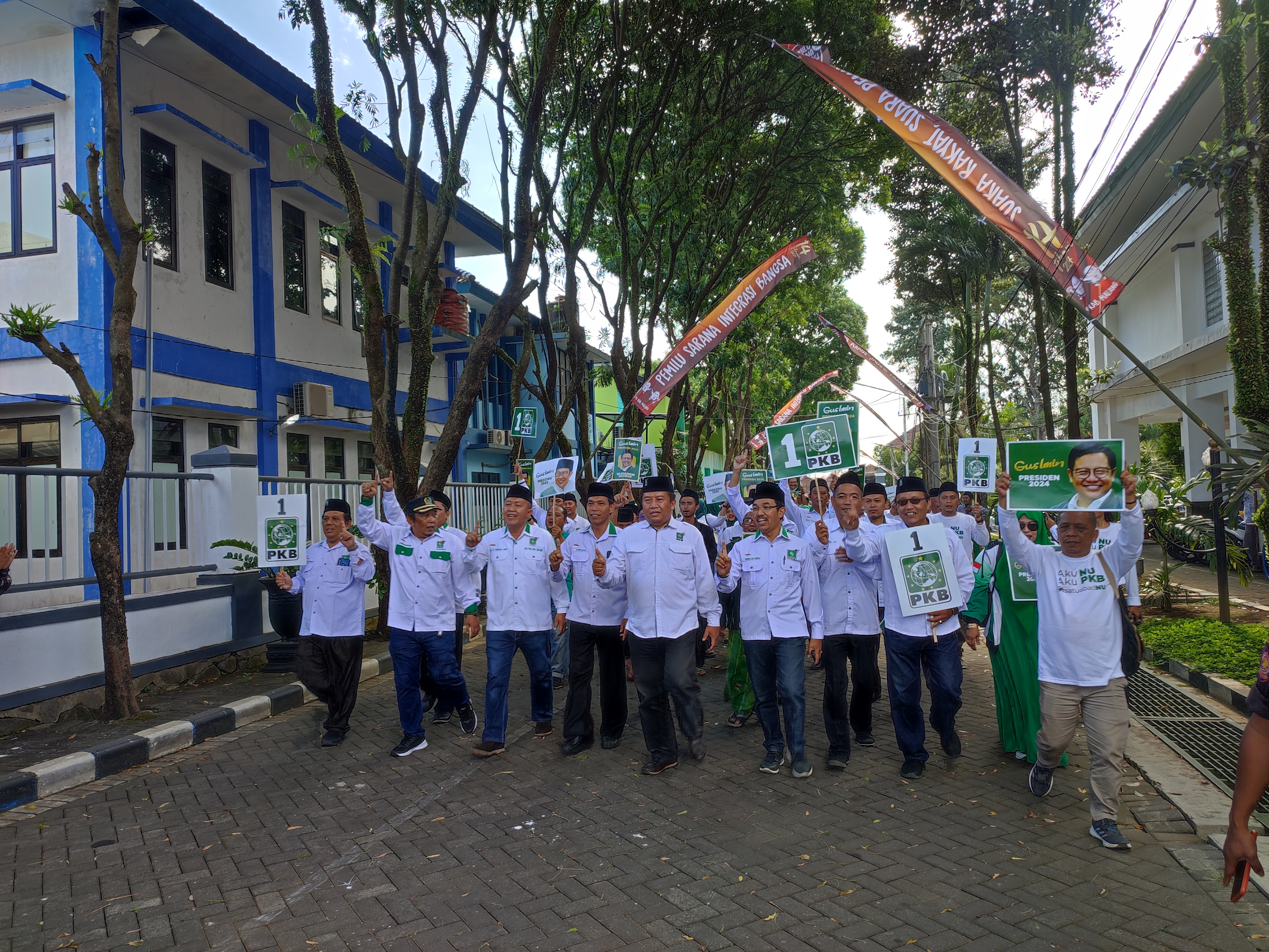 Rombongan pengurus dan kader DPC PKB Kabupaten Malang tiba di KPU sekira pukul 14.15 WIB. Ketua DPC PKB Kabupaten Malang HM Kholiq memimpin langsung rombongan pendaftaran Bacaleg tersebut.