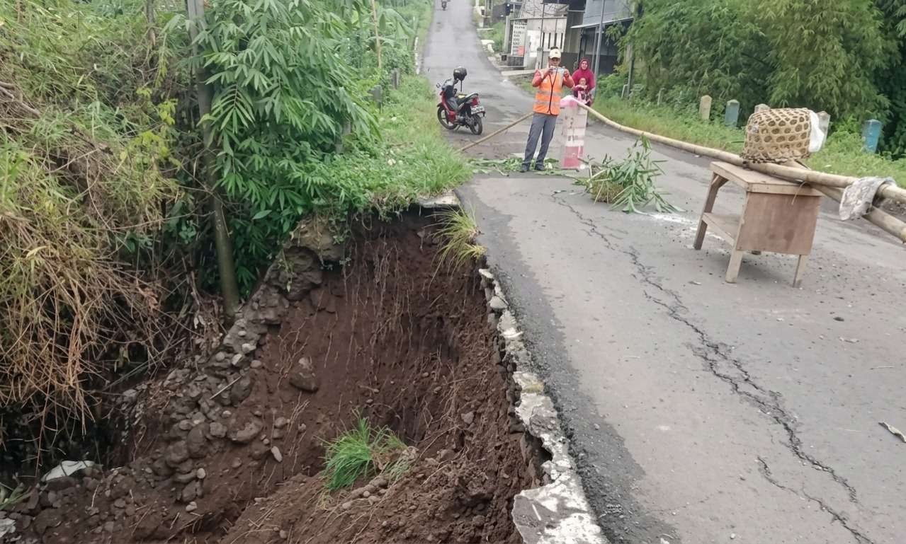 Sebagai langkah pengamanan, BPBD telah memasang penanda berupa blokade batang bambu di sisi jalan yang terdampak untuk mengingatkan pengendara agar lebih waspada.