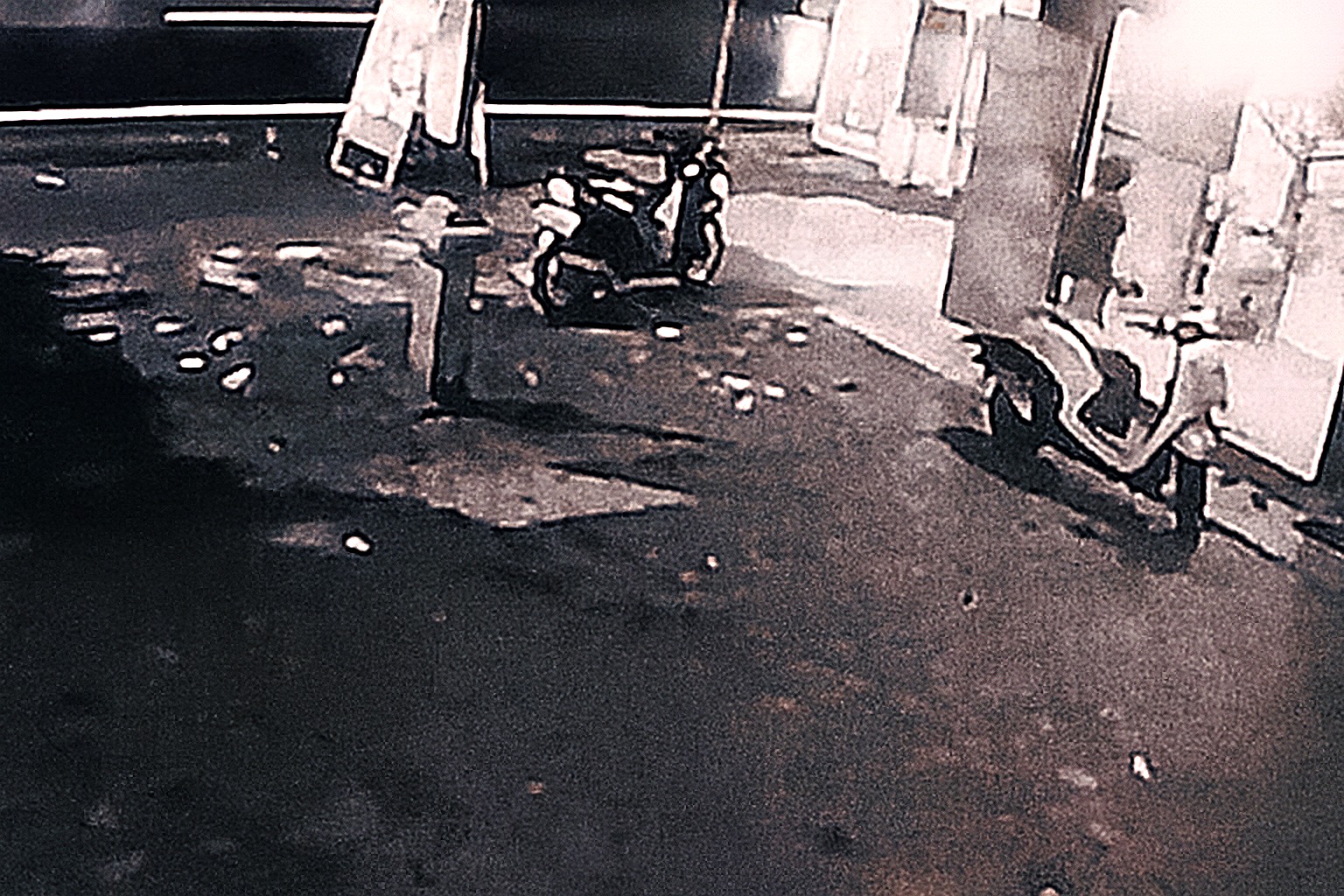 Korban berinisial F (19), seorang perempuan yang sedang berjaga sendirian, saat itu tengah menggunakan telepon genggam. Berdasarkan rekaman CCTV, pelaku mendekat dan mengarahkan senjata tajam ke arah perut korban sambil meminta ponsel. Dalam kondisi terancam, korban menyerahkan ponsel yang berada di atas meja, namun langsung dirampas pelaku.