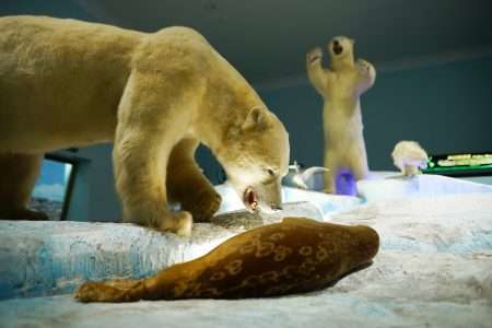 Pengunjung kemudian diajak menyusuri berbagai zona tematik, mulai dari Galeri Fosil, Zona Ikan dan Hewan Laut, hingga Zona Hewan Musim Dingin. Di area ini, salah satu koleksi yang paling mencuri perhatian adalah beruang kutub—satu-satunya yang dapat ditemukan di Indonesia dalam bentuk awetan. Kehadirannya memberikan gambaran nyata tentang kehidupan satwa di habitat ekstrem.