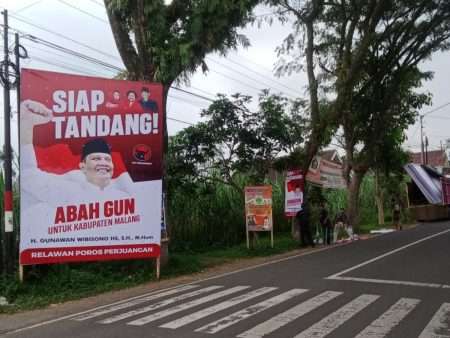 “Setiap kecamatan kami pasang 3 titik baliho ukuran 3×4 meter, kalau di desa sementara kami pasang 10 rontek ukuran 200×80 sentimeter. Pasca Abah Gunawan resmi mendaftar sebagai bakal calon Bupati Malang, maka teman-teman Poros Perjuangan langsung bergerak cepat. Kami tidak ingin kehilangan momentum untuk mengenalkan beliau kepada masyarakat Kabupaten Malang. Pemasangan baliho sosialisasi ini tujuannya menepis issue kalau pencalonan Abah Gunawan hanya gimmick politik, kami ingin pertegas kembali bahwa Abah Gunawan ini serius kita calonkan sebagai Bupati Malang,” kata Sekretaris Poros Perjuangan, Rudi.