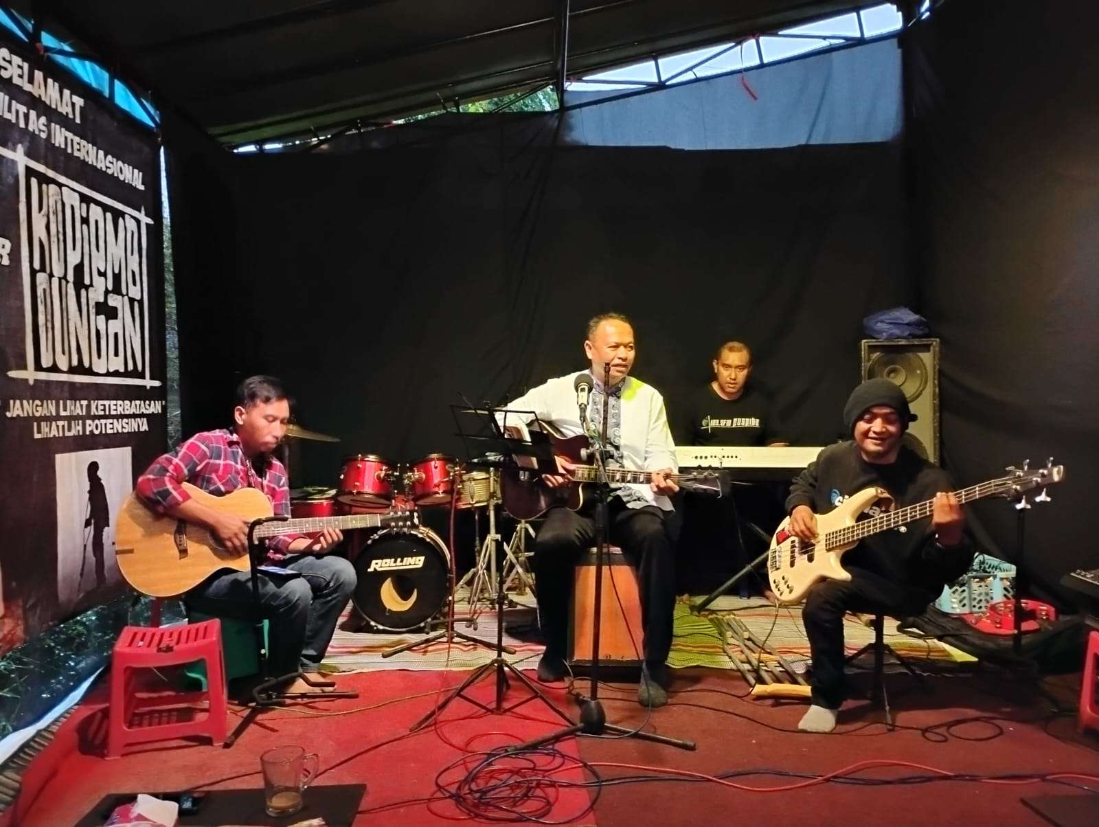 “Di sini pengunjung bisa menikmati kopi sambil dihibur live musik, bahkan ikut bernyanyi bersama saudara-saudara kita penyandang disabilitas,” tambahnya.