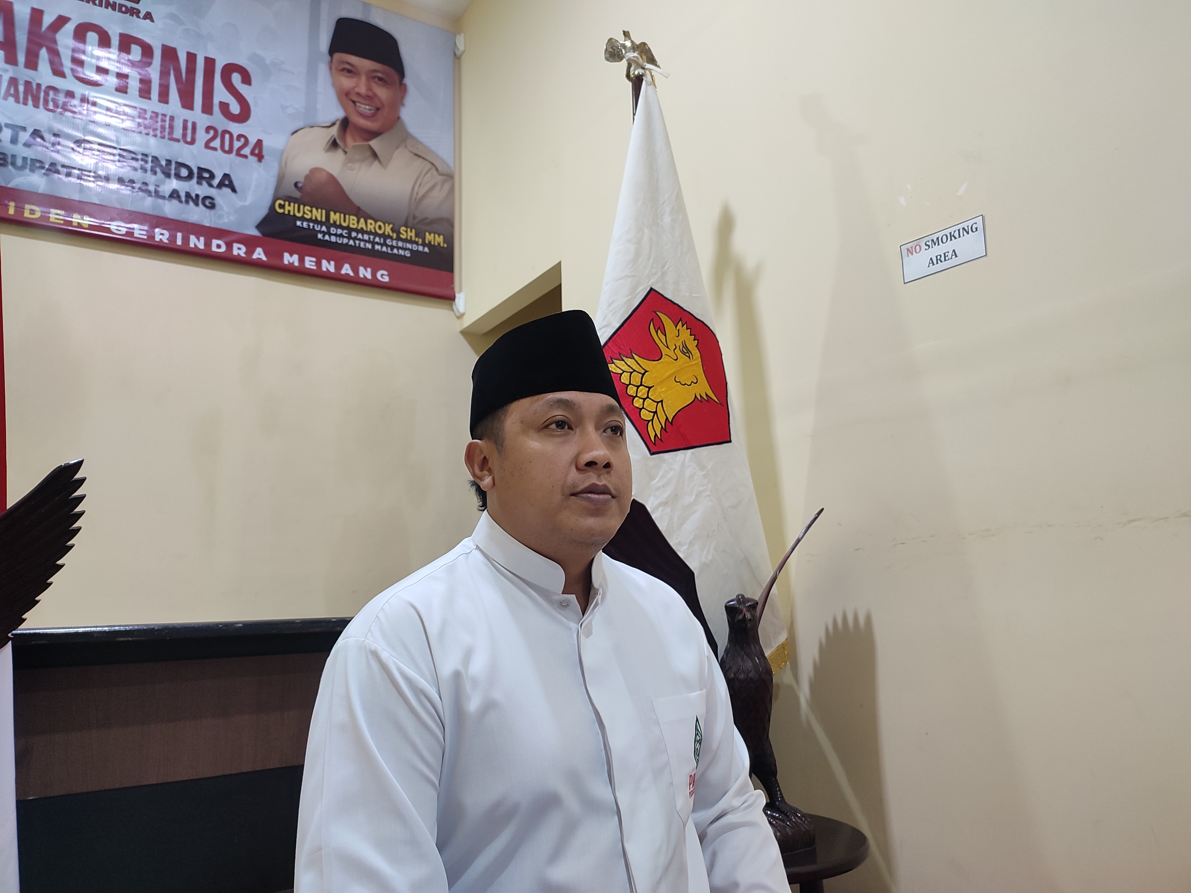 Ketua DPC Gerindra Kabupaten Malang Chusni Mubarok saat ditemui belum lama ini. (bacamalang/Dhimas)