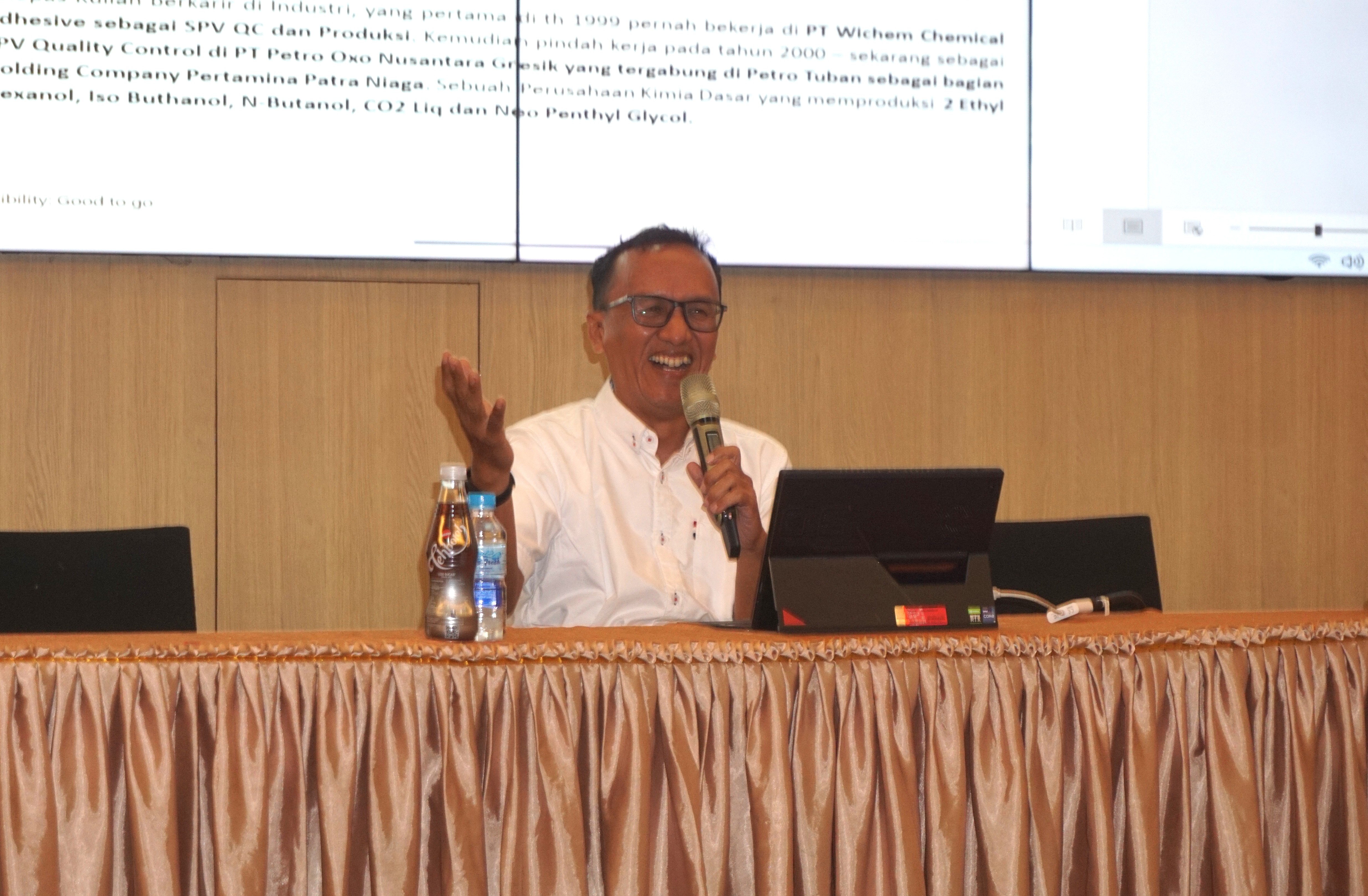 BACAMALANG.COM-Bekerja dengan aneka bahan kimia sudah menjadi ritme produksi bagi Sultoni Kharis S.Si. Pria yang merupakan SPV Quality Control di PT Petro Oxo Nusantara (PON) Gresik—bagian dari Holding Company Pertamina Petro Niaga ini bertugas mengamati setiap detail proses yang berjalan. Baginya, kualitas bukan sekadar standar, melainkan tanggung jawab.